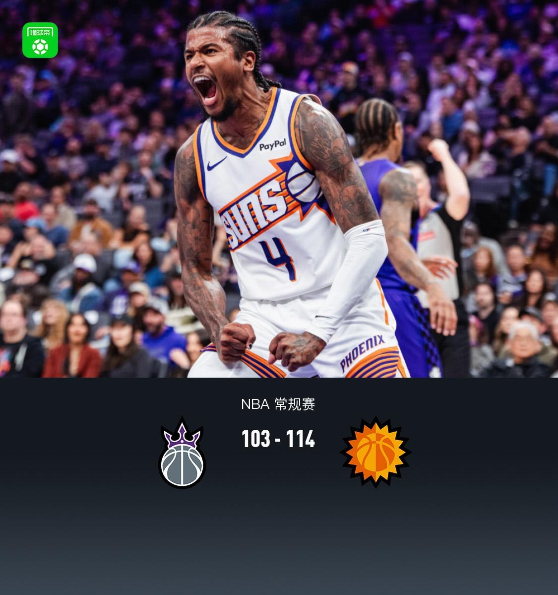 北京时间3月4日NBA 常规赛,萨克拉门托国王对阵菲尼克斯太阳。半场国王55-59太阳,最终国王103-114太阳。